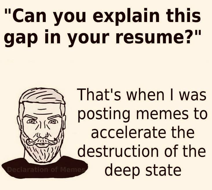 Thatβs when I was posting memes to accelerate the destruction of the deepstate.