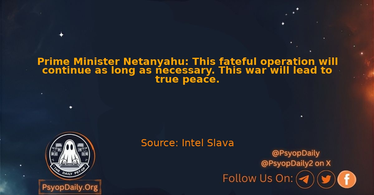 🇮🇱🇮🇷Prime Minister Netanyahu: This fateful operation will continue as long as necessary. This war will lead to true peace. – Intel Slava