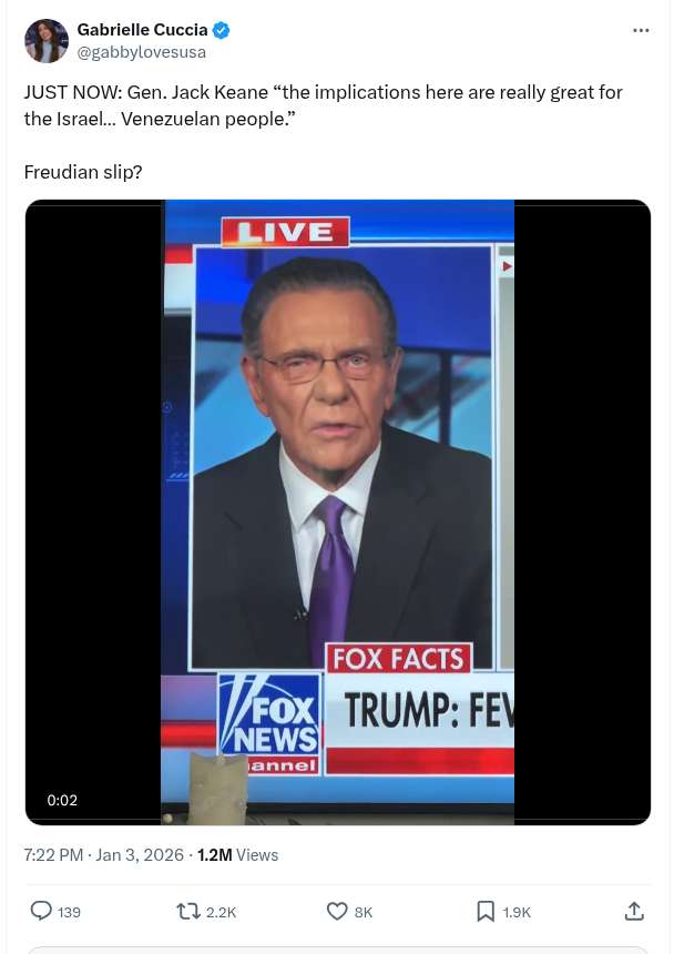 ย ๐Ÿ‡ฎ๐Ÿ‡ฑ๐Ÿ‡บ๐Ÿ‡ธ๐Ÿ‡ป๐Ÿ‡ช Gen. Jack Keane โ€œThe Implications Here Are Really Great For The Israelโ€ฆ Venezuelan People.โ€
