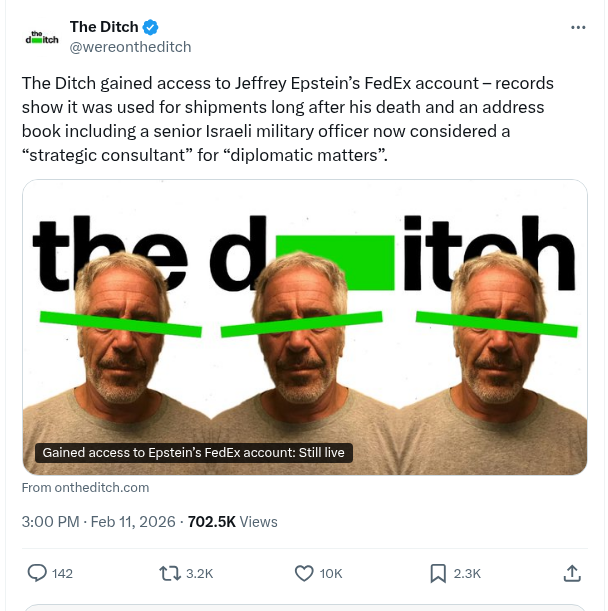 😈🚨🇺🇸🇮🇱 The Ditch Gained Access To Jeffrey Epstein’s Fedex Account – Records Show It Was Used For Shipments Long After His Death And An Address Book Including A Senior Israeli Military Officer Now Considered A “Strategic Consultant”…