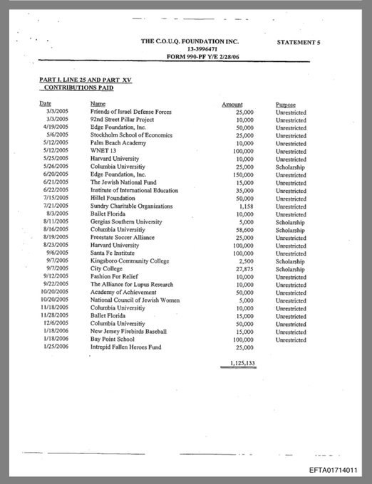 The Epstein Files include IRS filings showing that Jeffrey Epsteinโs foundation donated to Friends of the Israel Defense Forces, a U.S. charity that fundraises in coordination with Israelโs military establishment to support IDF soldiers and military-linked infrastructure.