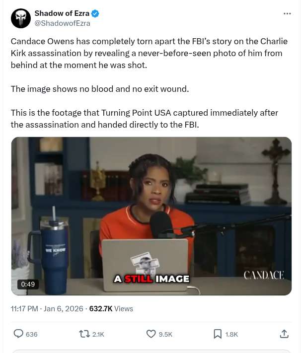 ย ๐จ๐บ๐ธ๐ฎ๐ฑ Candace Owens Has Completely Torn Apart The FBIโs Story On The Charlie Kirk Assassination By Revealing A Never-Before-Seen Photo Of Him From Behind At The Moment He Was Shot.