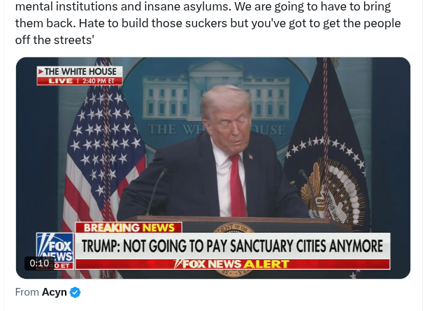 Β π¨ Just In – President Trump: ‘Signed An Executive Order To Bring Back Mental Institutions And Insane Asylums. We Are Going To Have To Bring Them Back. Hate To Build Those Suckers But You’ve Got To Get The People Off The Streets’