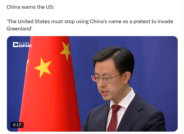 🚨BREAKING: China Warns the US: ‘The United States must stop using China’s name as a pretext to invade Greenland’