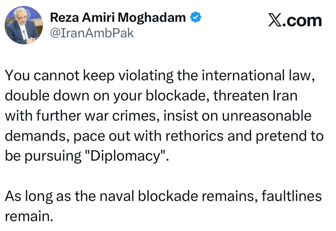 ย โโ๏ธ๐บ๐ธ/๐ฎ๐ท/๐ต๐ฐ NEW: Iranโs Ambassador to Pakistan, Reza Amiri Moghadam, on X: