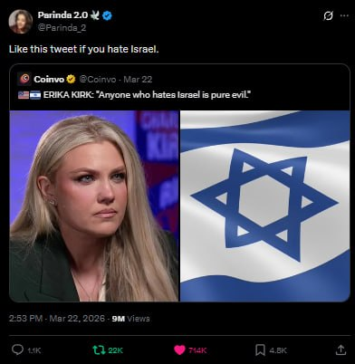 🇺🇸🇮🇱 ERIKA KIRK: “Anyone Who Hates Israel is Pure Evil.” – Parinda 2.0