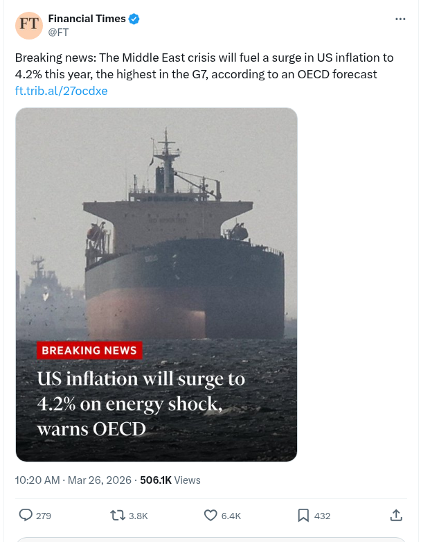 🚨 BREAKING News: The Middle East Crisis Will Fuel A Surge In US Inflation To 4.2% This Year, The Highest In The G7, According To An Oecd Forecast
