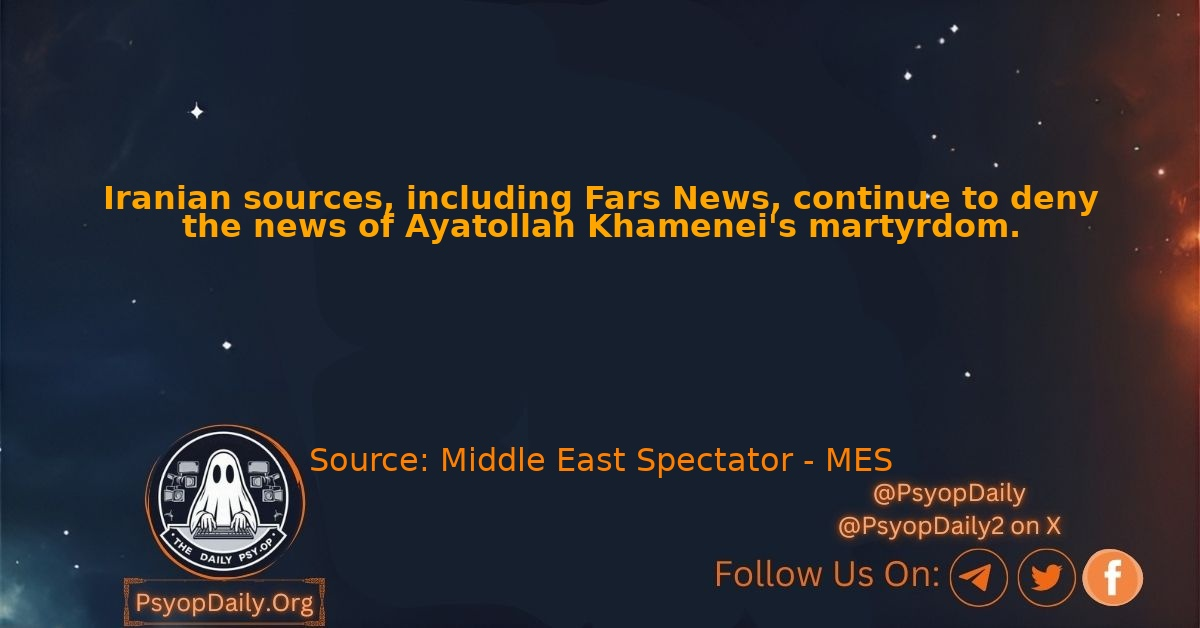 Read MoreIranian sources, including Fars News, continue to deny the news of Ayatollah Khamenei’s martyrdom. I highly doubt Trump would announce