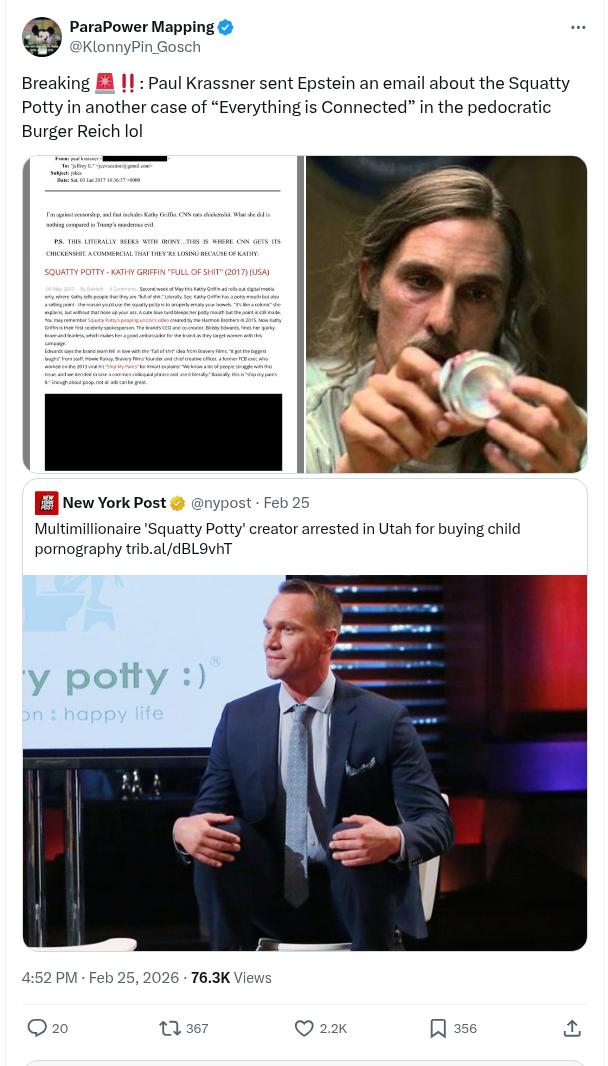 Read MorePaul Krassner Sent Epstein An Email About The Squatty Potty In Another Case Of “Everything Is Connected” In The Pedocratic