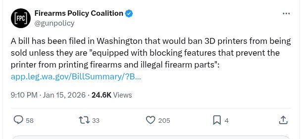 A Bill Has Been Filed In Washington That Would Ban 3d Printers From Being Sold Unless They Are “Equipped With Blocking Features That Prevent The Printer From Printing Firearms And Illegal Firearm Parts”: – Firearms Policy Coalition