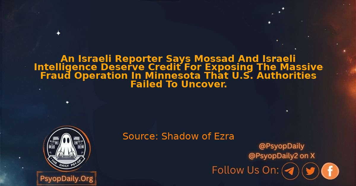 An Israeli Reporter Says Mossad And Israeli Intelligence Deserve Credit For Exposing The Massive Fraud Operation In Minnesota That U.S. Authorities Failed To Uncover.