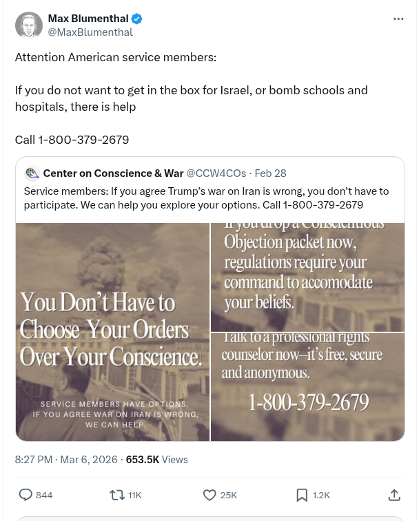Attention American Service Members: If you do not want to get in the box for Israel, or bomb schools and hospitals, there is help