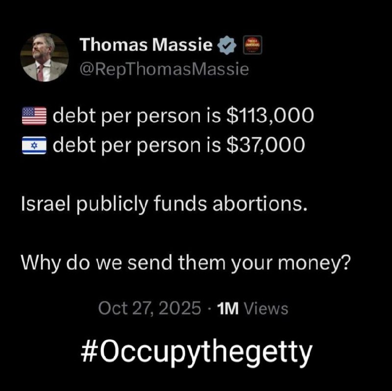 Congressman Thomas Massie questions American aid to Israel. #Occupythegetty