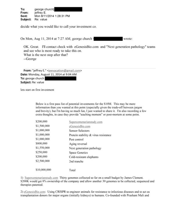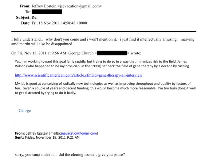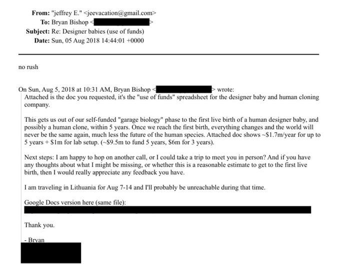 Epstein Seemed Very Interested In Human Cloning And Designer Babies. Seems Like He Was Looking To Invest In Companies In That Space, Including A Company Using CRISPR.
