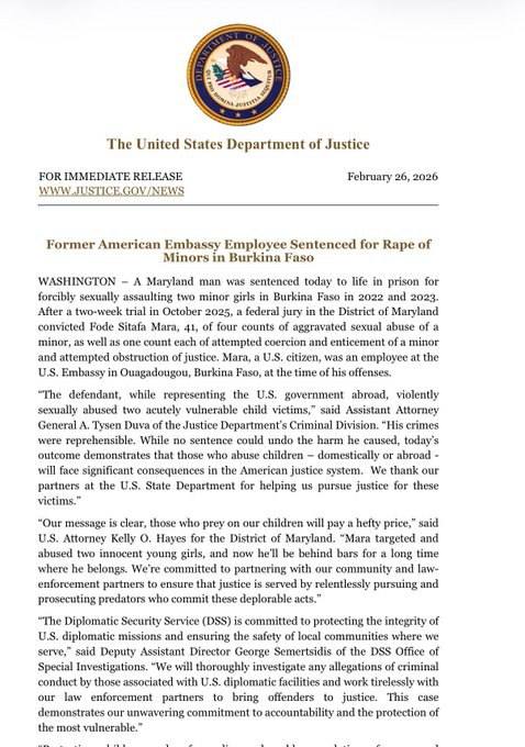 Former American Embassy Employee Sentenced For Rape Of Minors In Burkina Faso – Breaking911