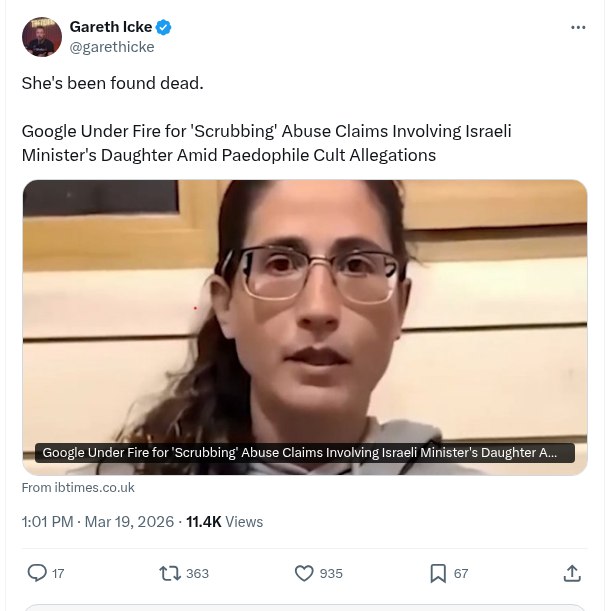 Google Under Fire for ‘Scrubbing’ Abuse Claims Involving Israeli Minister’s Daughter Amid Paedophile Cult Allegations – Orit Strock’s Daughter Shoshana Strock Has Been Found Dead. – Gareth Icke