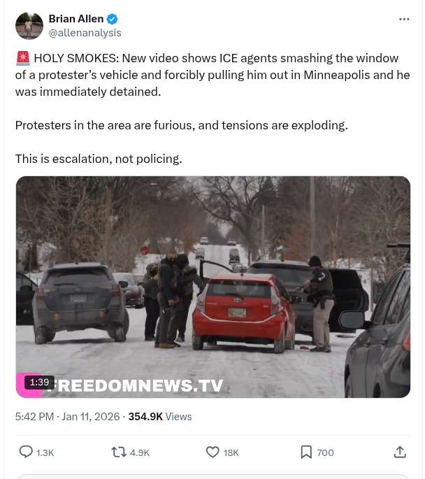 Holy Smokes: New Video Shows ICE Agents Smashing The Window Of A Protester’s Vehicle And Forcibly Pulling Him Out In Minneapolis And He Was Immediately Detained.