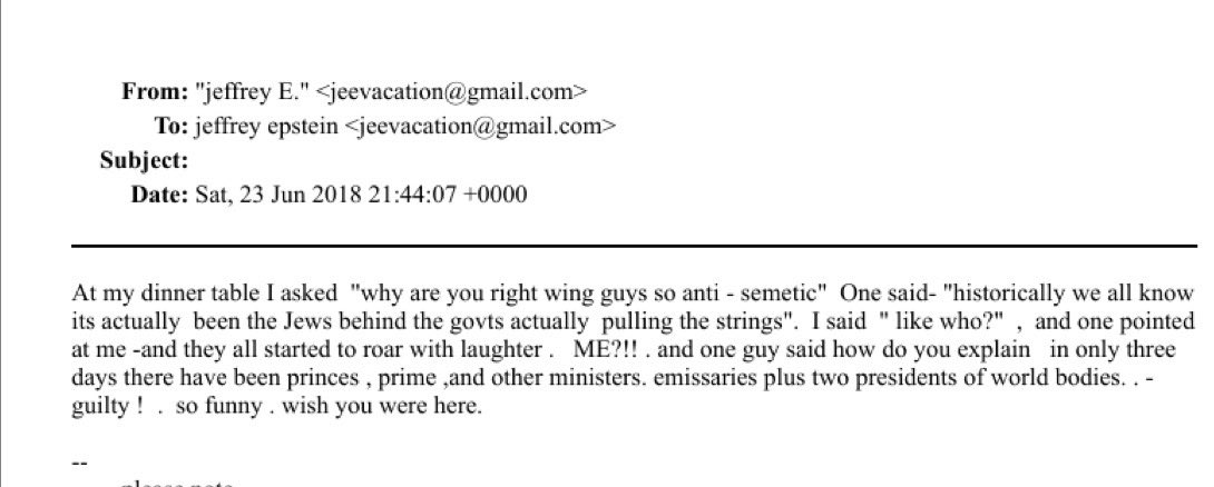 In A 2018 Email, Jeffrey Epstein Recounts Laughing About Jews Controlling The World. – AF Post