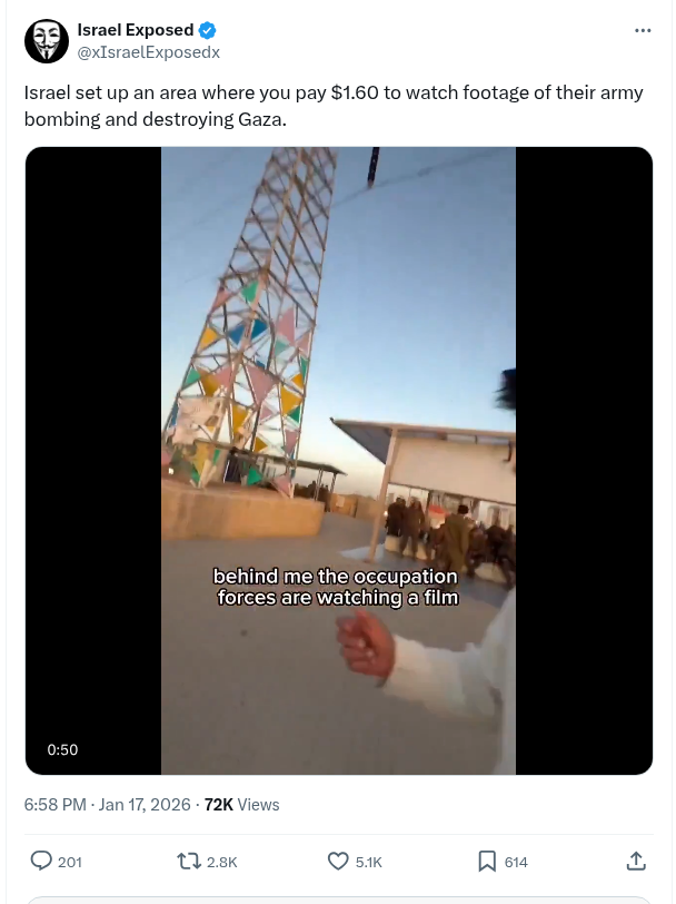 Israel Set Up An Area Where You Pay $1.60 To Watch Footage Of Their Army Bombing And Destroying Gaza.