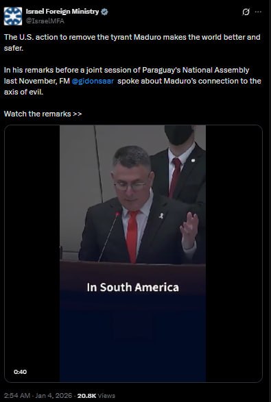 Israeli FM On X: ‘The U.S. Action To Remove The Tyrant Maduro Makes The World Better And Safer.’ – TheMcgWire
