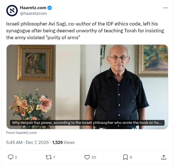 Israeli Philosopher Avi Sagi, Co-Author Of The IDF Ethics Code, Left His Synagogue After Being Deemed Unworthy Of Teaching Torah For Insisting The Army Violated “Purity Of Arms”