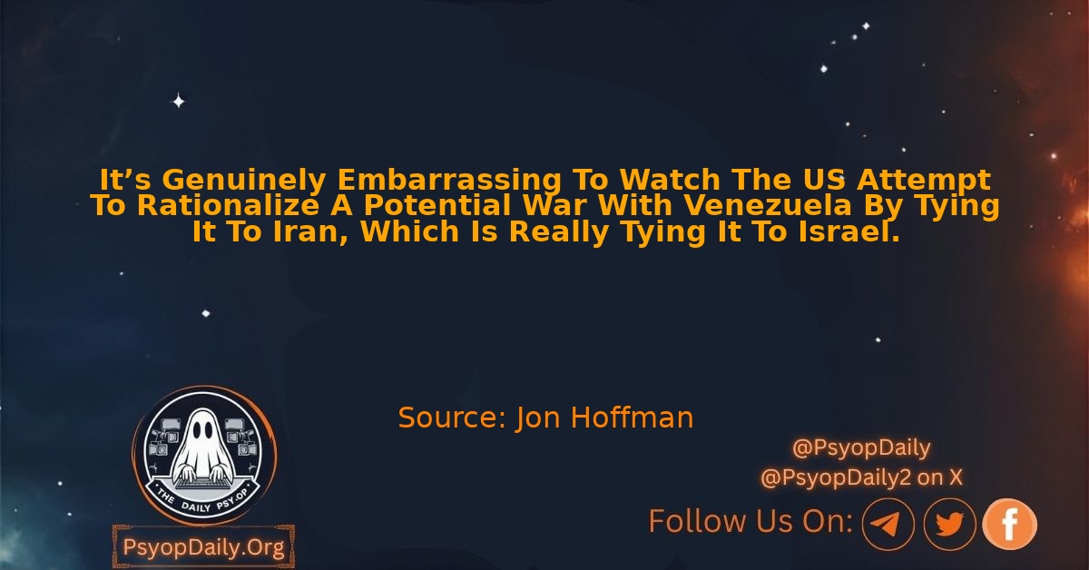 It’s Genuinely Embarrassing To Watch The US Attempt To Rationalize A Potential War With Venezuela By Tying It To Iran, Which Is Really Tying It To Israel. – Jon Hoffman