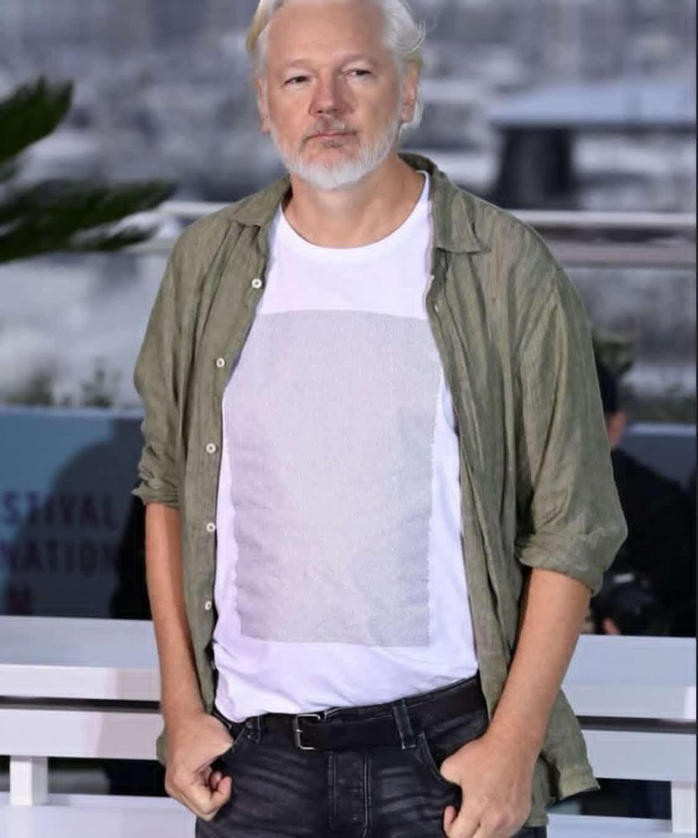 Julian Assange wore a T-shirt at Cannes festival with the names of 4,986 Palestinian children aged five and under who were killed by Israel.
