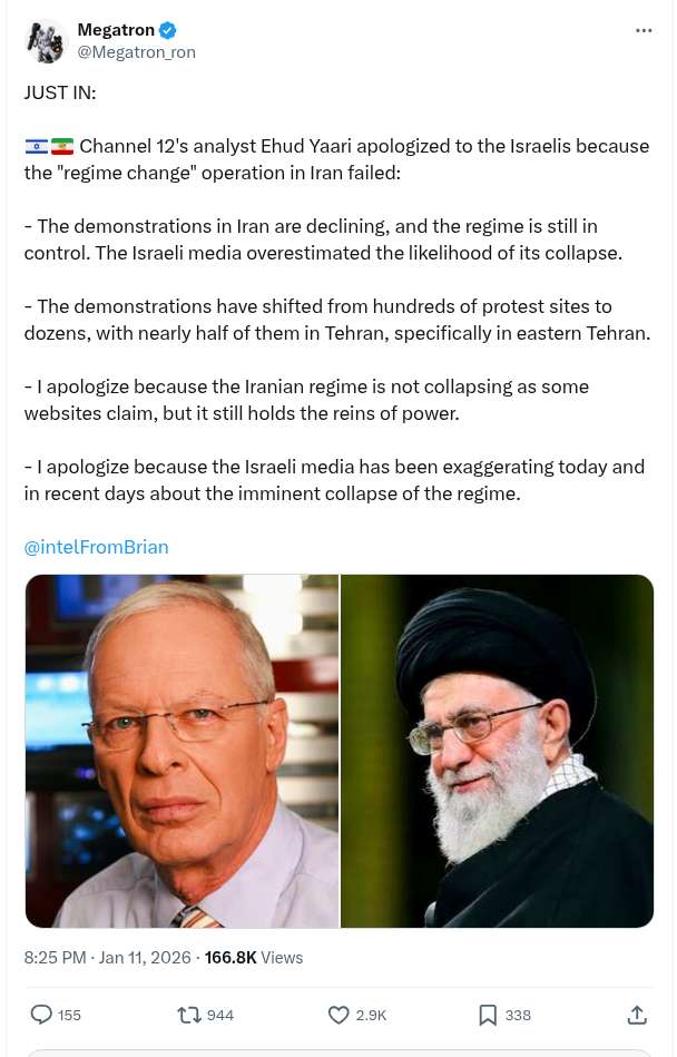 – I apologize because the Israeli media has been exaggerating today and in recent days about the imminent collapse of the regime. @ intelFromBrian