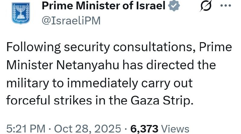 JUST IN – Netanyahu orders “forceful strikes” in the Gaza Strip.