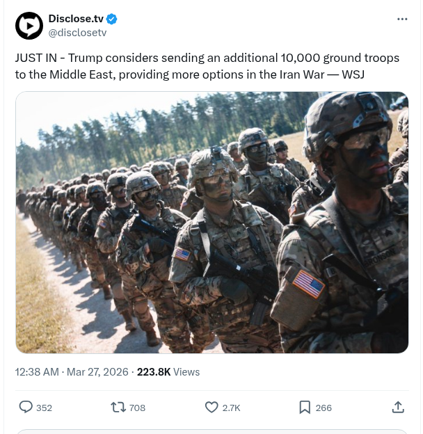 Just In – Trump Considers Sending An Additional 10,000 Ground Troops To The Middle East, Providing More Options In The Iran War – WSJ – Disclose.tv