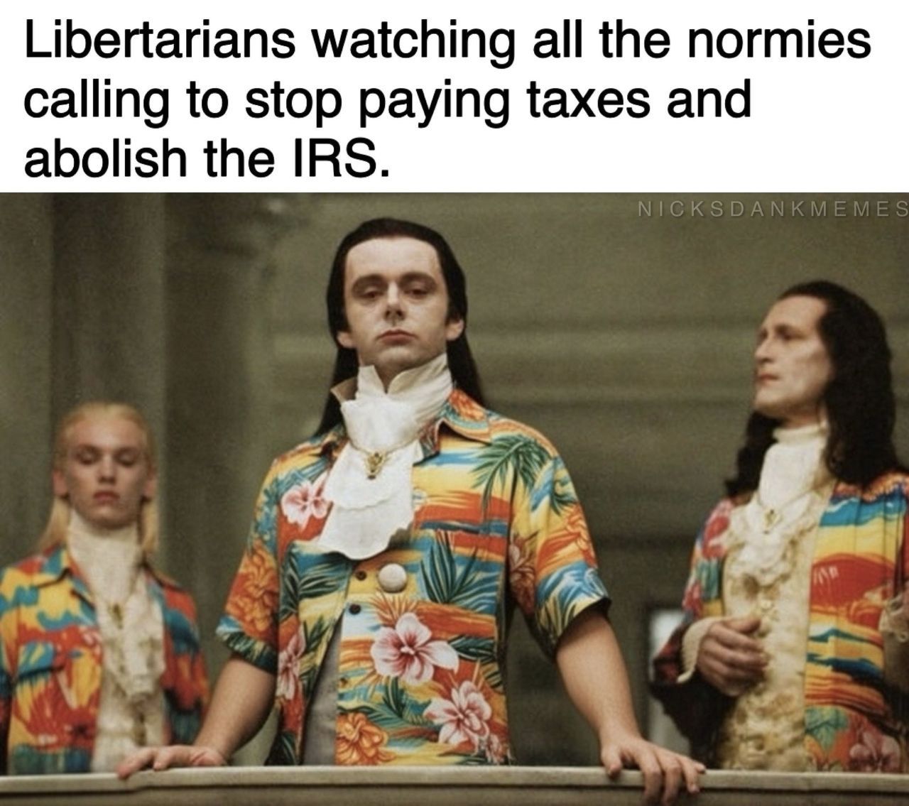 Libertarians Watching All The Normies Calling To Stop Paying Taxes And Abolish The IRS