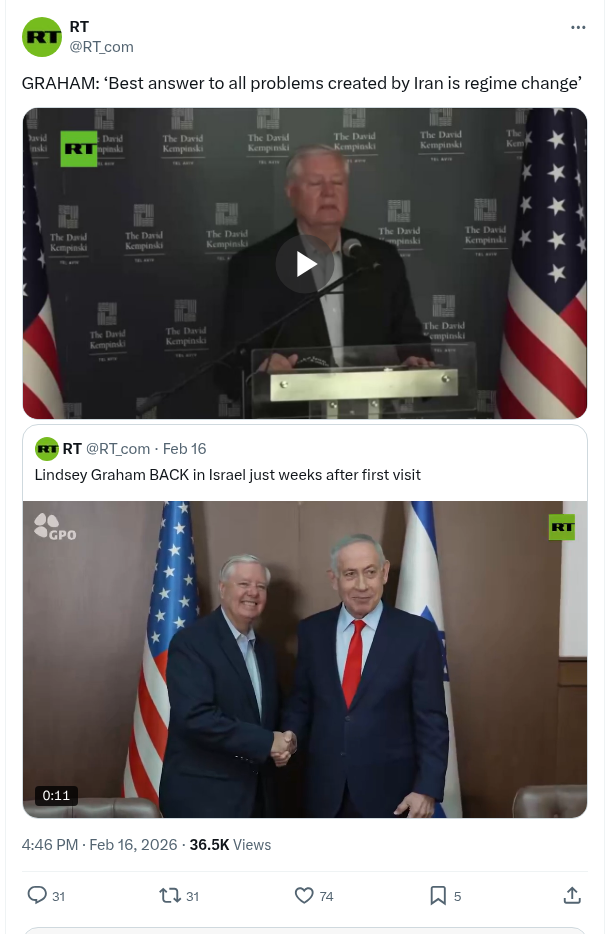 Lindsey Graham: ‘Best Answer To All Problems Created By Iran Is Regime Change’ – RT