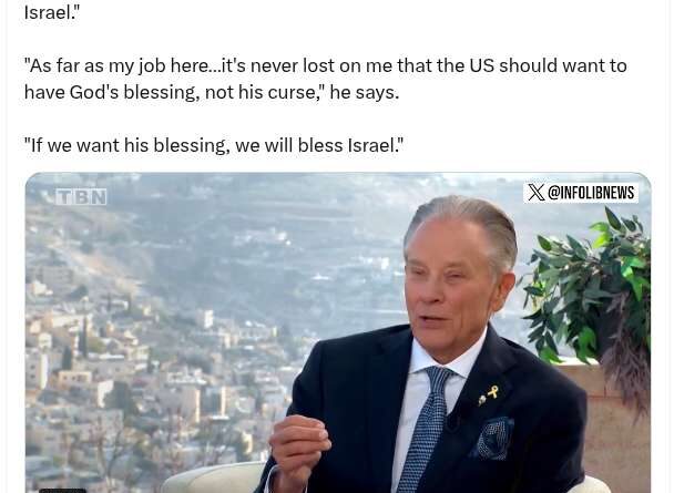 Related: 11/25/25 — US Ambassador Mike Huckabee Demands That Christians Understand They Have A Moral Debt Owed To The Jewish People.