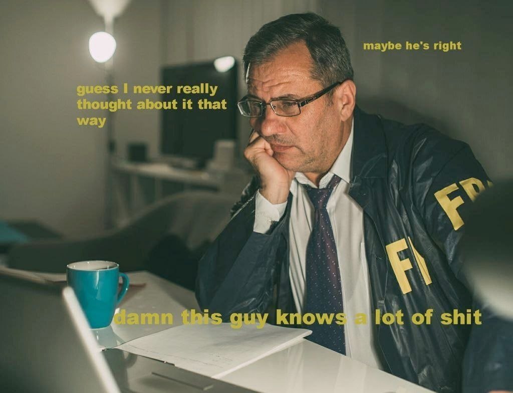 My FBI guy like: “guess i never really thought about it that way”