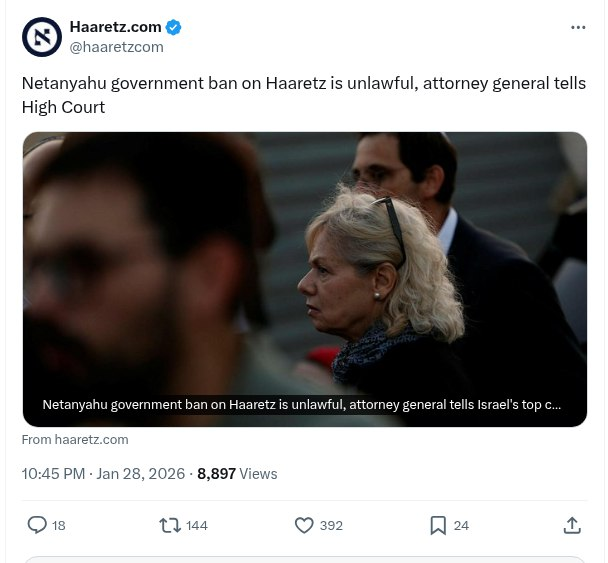 View This Post on Haaretz’s X / Twitter
