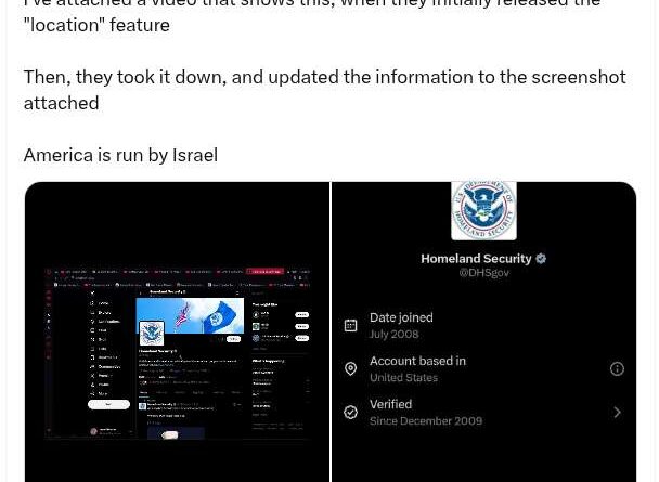 Related: 11/24/25 — VIDEO | Controversy erupts after new X feature allegedly lists DHS account as based in Tel Aviv
