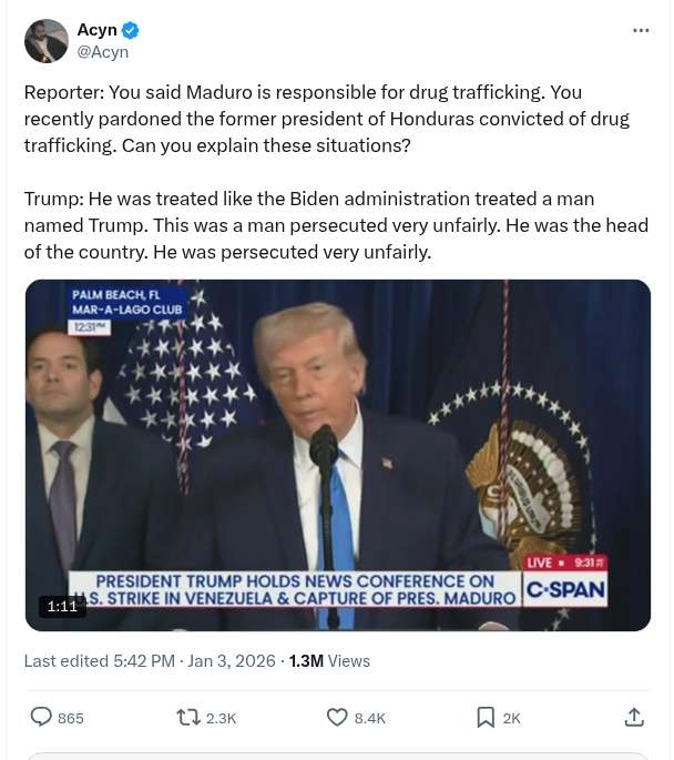 Reporter: You Said Maduro Is Responsible For Drug Trafficking. You Recently Pardoned The Former President Of Honduras Convicted Of Drug Trafficking. Can You Explain These Situations?