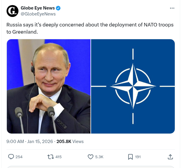 Russia Says It’s Deeply Concerned About The Deployment Of NATO Troops To Greenland.