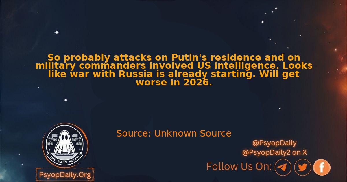 So probably attacks on Putin’s residence and on military commanders involved US intelligence. Looks like war with Russia is already starting. Will get worse in 2026.