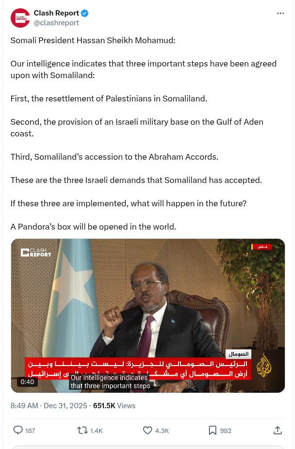 Related: 12/31/25 — President of Somalia confirms they discovered about $2 TRILLION Oil & Gas — The Somaliland Recognition Makes More Sense Now