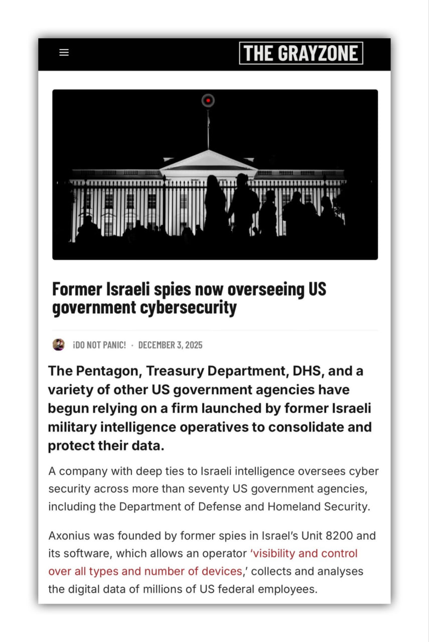 Former spies in Israel’s Unit 8200 are overseeing US gov cybersecurity in over 70 US Agencies including Dept of War & Homeland Security where they have access & control over all types of devices & collect data from millions of federal employees
