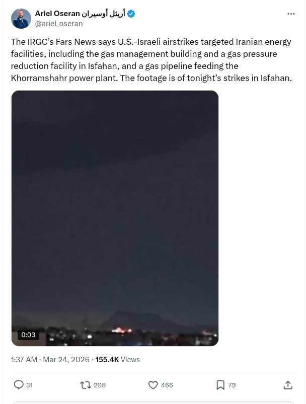 The IRGC’s Fars News Says US-Israeli Airstrikes Targeted Iranian Energy Facilities, Including The Gas Management Building And A Gas Pressure Reduction Facility In Isfahan, And A Gas Pipeline Feeding The Khorramshahr Power Plant. The… – Ariel Oseran أريئل أوسيران