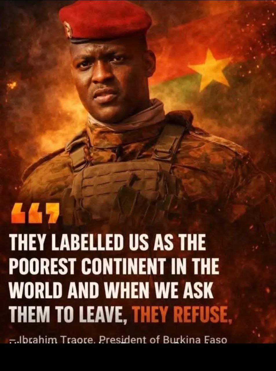 “They labelled us as the poorest continent in the world and when we ask them to leave, they refuse.” – Ibrahim Traore – President Of Burkina Faso
