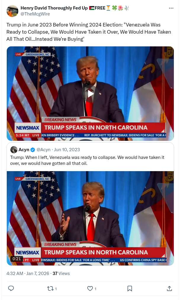 Trump In June 2023 Before Winning 2024 Election: “Venezuela Was Ready To Collapse, We Would Have Taken It Over, We Would Have Taken All That Oil…instead We’re Buying’