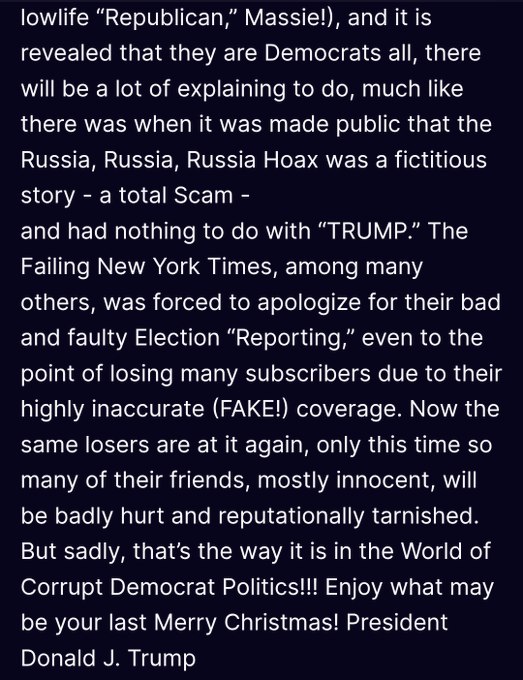 Trump Made A New Post Today Saying The “Sleazebags Who Loved Jeffrey Epstein” Include Thomas Massie