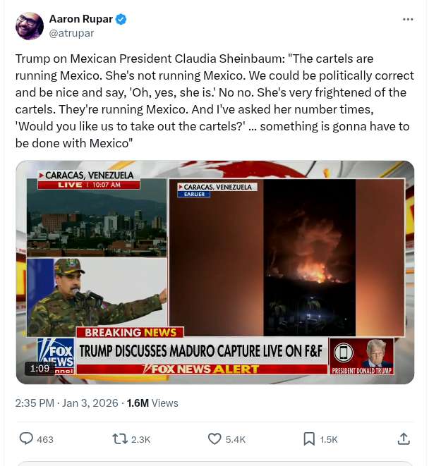 Note from @PsyopDaily: [Mexico is also on the agenda. Don’t forget. Is Mexico next? (or Columbia?)]