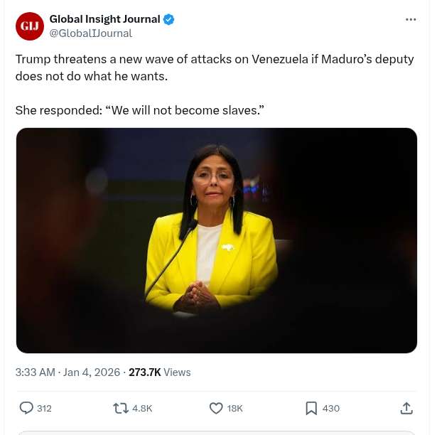 Trump Threatens A New Wave Of Attacks On Venezuela If Maduro’s Deputy Does Not Do What He Wants.