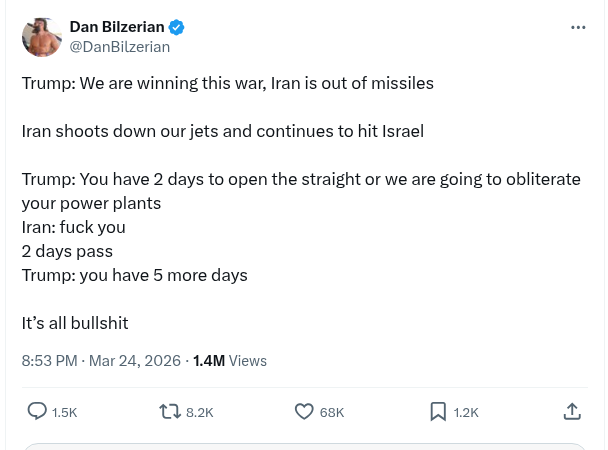 3/23 — Trump Backs Off On Threat To Bomb Iran’s Power Plants