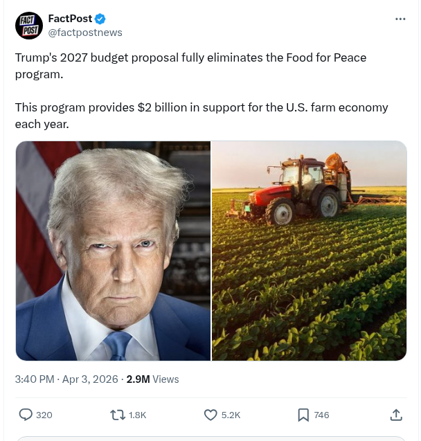 Trump’s 2027 Budget Proposal Fully Eliminates The Food For Peace Program. – FactPost