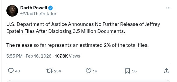U.S. Department Of Justice Announces No Further Release Of Jeffrey Epstein Files After Disclosing 3.5 Million Documents. – Darth Powell
